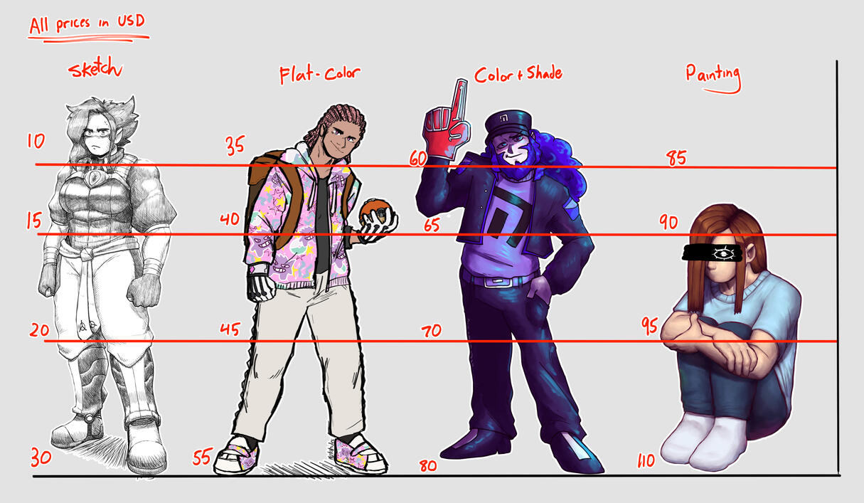 | Price (USD) | Icon | Headshot | Bust | Thighs-Up | Fullbody |